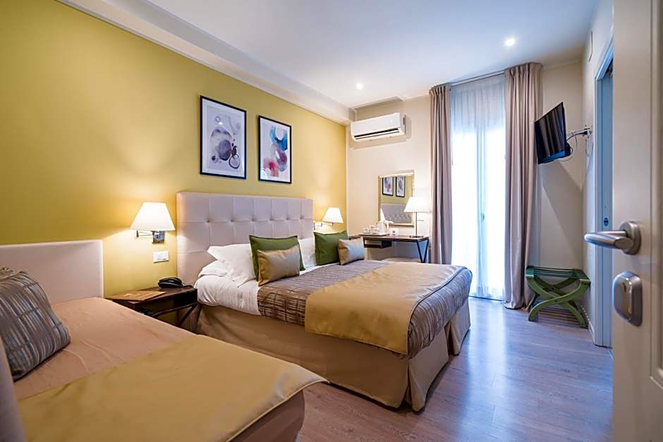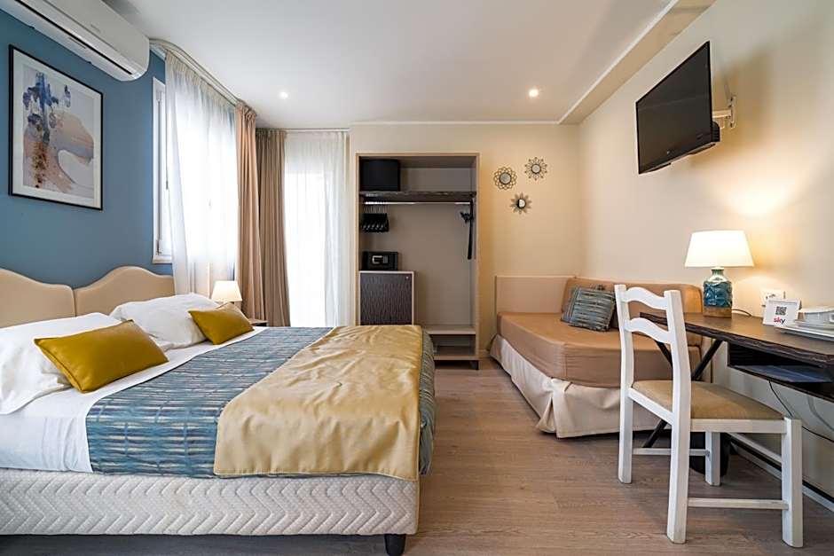 This air-conditioned triple room includes a flat-screen TV with satellite channels, a private bathroom as well as a terrace with sea views.